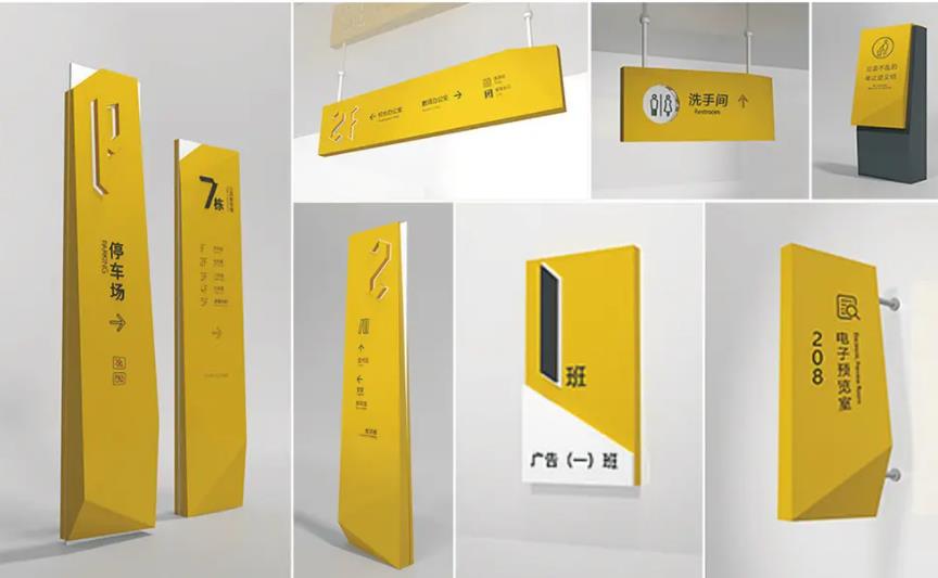 商业楼层导视标识设计,整体换个系列按照金属烤漆异形发光处理落地。
