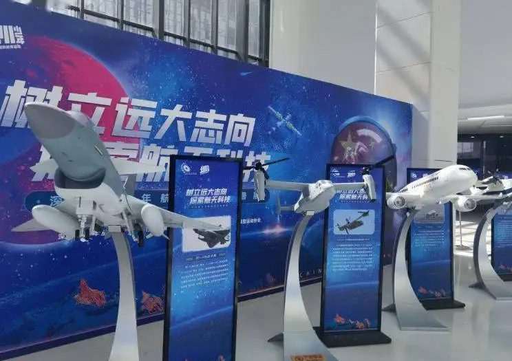 一眼望曩昔,从咱们的左侧的开展历史,再到中心的产品展现,最后右边的简略文字介绍,加上地面和房顶的规划,能够说每一处的展现,都在绽放航空航天的科技感,置身这个场景只会让咱们感受到祖国的强壮,公司的高明技能以及对研发人员的敬佩之心。